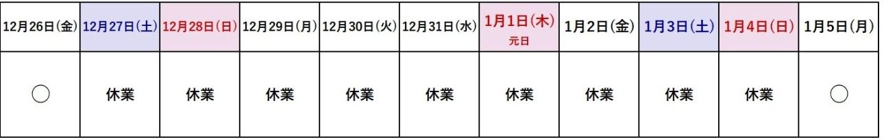 【’25年末~’26年始の営業】